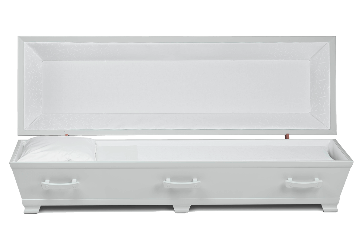 Akvarell Sober är en kista i milda och mjuka toner. Den mjukt brutna lacken skapar en sober och ombonad känsla.