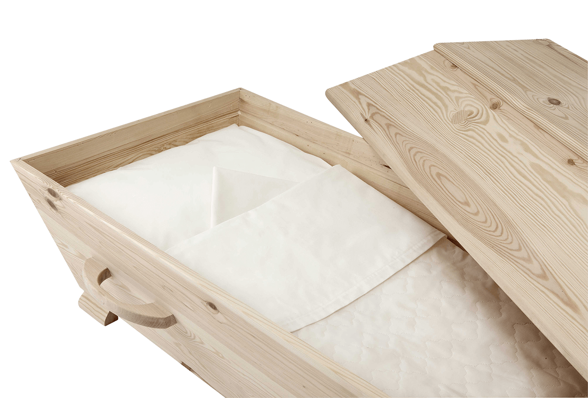 Fårö är en kista i obehandlad furu som passar perfekt för direktkremation eller ceremoni med bårtäcke. Den enkla designen och det naturliga materialet ger kistan en tidlös och värdig look.